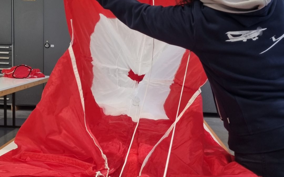Mit zunehmender Übung wurden die einzelnen Schritte immer vertrauter, und die praktische Prüfung mit ihrem festen Zeitlimit zeigte deutlich, ob die Abläufe und Handgriffe wirklich sitzen. Zwar möchte man im Vereinsalltag nicht unter Druck packen, doch diese Vorgabe machte sichtbar, wie sicher man die Handgriffe beherrscht. Viele erlebten kleine, aber wichtige Fortschritte, angefangen bei den ersten wirklich sauberen Faltungen bis hin zu einem spürbar flüssigeren Arbeiten. Am Ende stand ein neues Verständnis für die Rettung und das Gefühl, mit der damit verbundenen Verantwortung gut umgehen zu können. Gleichzeitig blieb die Hoffnung bestehen, dass der Fallschirm nie zum Einsatz kommen muss und die ganze Arbeit im besten Fall umsonst war.
